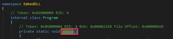 In order to run a dll you need to know the functions it has defined so you can call the dll and its function, in this case the function is called embed