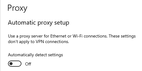Disable proxy auto detect setting