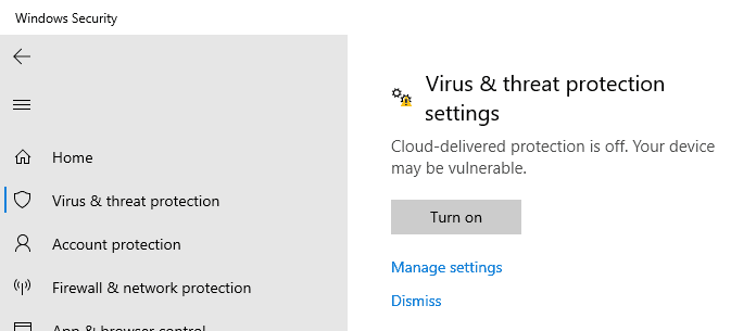 Defender, open Defender settings > Home > Virus & threat - protection > Virus & threat protection settings - set all - Defender Settings to off