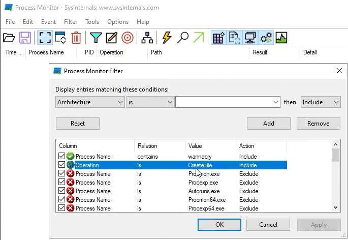 Filter for Operation CreateFile